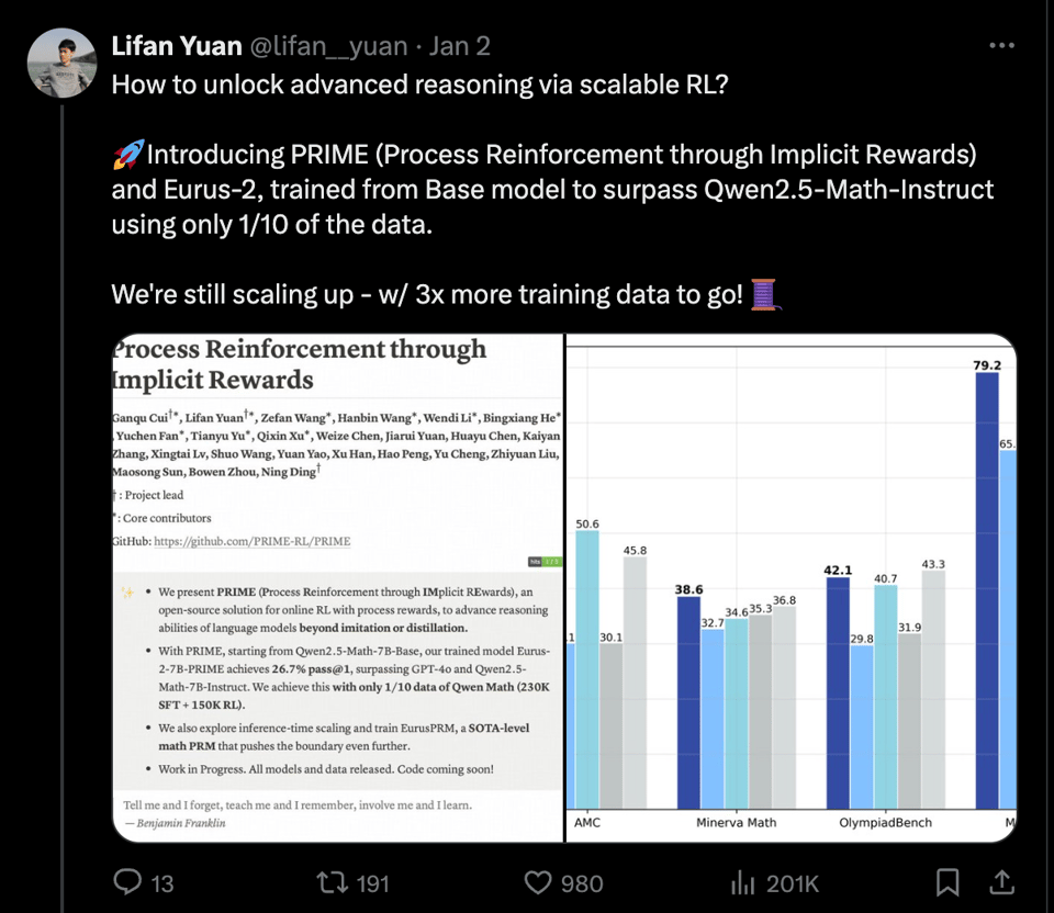 [AINews] PRIME: Process Reinforcement through Implicit Rewards • ButtondownTwitterTwitter